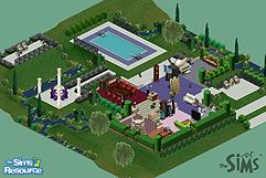 The Madison floorplan is definitely different. The house comes fully furnished and is raised about four levels above the road and surrounded by a sunken pond. The swimming pool and the observation deck in the backyard are also raised. To enter the house through the front door, your Sim will need to use the multi-level walkway. The second floor of the Madison consists of four large bedrooms and two bathrooms as well as room for a small office or playroom for the kids. There is a kitchen, a formal and an informal dining room, a guest bathroom, an office and both a formal and informal living room on the first floor. A stone patio stretches across the back of the house and extends to a lovely seating area marked by four columns and surrounded by the pond. Make your Sim the envy of the entire neighborhood and buy the Madison today!