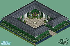 This house is inspired by pictures of seraglia, the outer wall is almost without windows, and surrounded by a hedge of roses and a moat. The entire house is centred on the inside formal gardens with its profusion of flowers and sparkling fountains. The house has two suites bed/bath and a series of common rooms consisting of kitchen, living room and hobby room. The house is planned for a sultan with one wife and one concubine, if children come, it will be possible to extend the house with an upstairs.