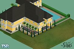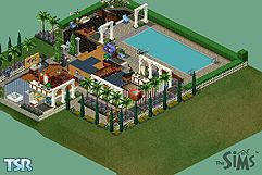 This is my first house to be submitted. The house is placed around a swimming pool. It has 2 floors. The exterior wallpaper is user created. The basic design of the house was taken from thesimsresource.com contest.