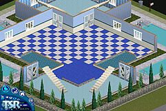On the 1st floor there is a big kitchen, 2 W.Cs, a living room, a dinning room. On the 2nd floor there are 2 bedrooms with their 2 bathrooms, a big corridor, a spare room. And they are ALL BLUE.. Even the windows and doors are blue. The house also contains 2 swimming pools, all kinds of plants, flowers and trees .. (but they are not blue, lol). 4 or more Sims can live in this big house.. Enjoy !!