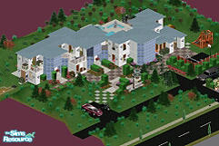 This is the Sim replica of basketball great Michael Jordan. The original home is a combination of white modernity and rounded edges (to represent the basketball concept). While the replica called for a few shortcuts, the magnificent ambience is not lost. House Stats - 2 bedroom suites (with personal bathrooms), a kitchen with a nook and a dining area, a living room, a sitting room and an upper level family room. The exterior includes a basketball court (of course), a golf putting green, and a playground. Decorations and Vehicles not included! Note: stephanie b. homes usually include Maxis downloads. :)