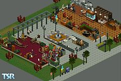 A swanky restaurant with a shady pub on top. A variety of shops that specialize in clothing to voodoo masks and candels! And finally a small but hip dance club for those sims that never tire of the night life! And outside there is a sweet little cafe for a quite snack and coffee. Don't forget to look around the corner for the lover's