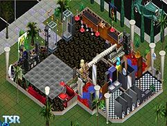 The swankiest club ever! Mod/Retro is the prevailing decorating style. Includes a bar aside the gargantuan dance floor and another upstairs to serve the patrons sitting around the hole that peers down to the dance floor and DJ booth. Each restroom has a lounge so your sims can socialize while they're waiting to go.