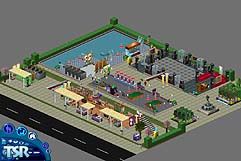 Sam's multiplaza offers everything: park for lovers, bar and dance floor for party maniacs, romantic dinner in SimLand's finest restaurant, swimming area for sporty sims and kid's, shopping center where you can find gifts and lots of stuff.