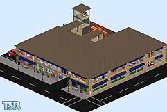DOWNTOWN OASIS! Simpletown Airways is a part of stephanie b.'s Simpletown Collection. The lot includes a travel agency, a 2 terminal airport w/ waiting areas, 2 restaurants (Asian & Burger Joint), 16 toilets (4 restrooms), 2 shops (souvenir and clothing), enclosed display windows, an arcade area, concession stands, elevators, a 2 airplane runway, a control tower, under terminal parking (9 cars), staff parking (6 cars) - Vehicles not included. - Enjoy!