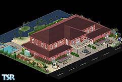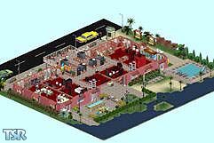 DOWNTOWN OASIS! This lot includes a hotel with 6 rooms, 2 restrooms, a ballroom/restaurant/bar, outdoor dining patio, a gift store and an outdoor swimming pool. Add a few downtown ready beds, dressers and showers and bring Simpletown Inn to life. See ya' there!