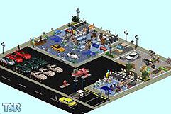 DOWNTOWN OASIS! This lot includes a car dealership with a 2 car showroom/2 offices (computer/reading areas)/an office cafeteria (restaurant)/4 restrooms (16 stalls total), an outdoor car lot (fits 9 to 12 cars), a setup for 2 gas pumps, an auto repair shop (w/ an office) and a convenience store (w/3 parking spaces. Cars not included. See ya' there!