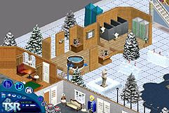 The large snow summit lot with an upscale hotel. Main building has a pub with dancefloor, darts and pool table, very comfortable dining room, seperate clean-up area, lobby with gift shop and two large double suites. There is also a suana/hot-tub outbuilding with espresso and a small shopping center with an arcade upstairs. The camping facilities include three igloos, campfire, grill and tables. Rental booth with fishing pier, snow baording, slides and ice fort for snowball fights. WARNING: An odd thing about this lot is that everytime my sims vacation here, I get a naked DJ named "DJ - Z Buffer" hahaha who spends a lot of time in the hot tub! No, I didn't do this on purpose and no, I have no idea how it happened. :D Maybe the hottub is too close to the DJ booth?
