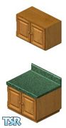 Beautiful green and oak kitchen cabinet/counter top with over head cabinet. Part of the Green Country Oak Kitchen Set.