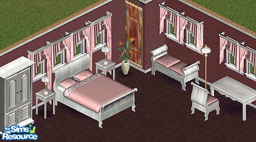 Includes: Love Bed, Bench, Chair, Curtains(2), Desk, Armoire, Endtable, Lamps(2)