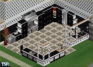 Includes: Tall Counter, counter, table, stool, plant, statue.