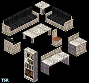 Includes: Counters, Desk, Dining Chair, Lounge Chair, Loveseat, Sofa, Coffee Table, Bookcase, End Table