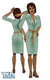 This outfit is perfect for the fashion conscious working girl. Suitable, yet sexy, this aqua blazer style dress comes with a gold link belt, and beautiful jade buckle. Comes in all skin tones.