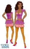 This outfit is made up of a multicolor polka-dotted mini, worn under a purple ruffled top. With day-glo orange stockings, this sexy combo looks good enough to eat. Comes in all skin tones, head not included.