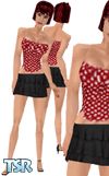 A black ruffled skirt with a red and white dotted top :) All 3 Skin Tones