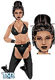 Fleece wears a seductive black leather combo; perfect for any kinky occassion. She accessorizes with studded bracelets and a studded collar. Thong back! Buyable in downtown mode.[Head included. Light skin only. HotDate Required!]