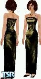 A yummy lace topped evening gown of olive patterned silk featuring a thin rope halter-styled top. This one ranks in the top ten of my all time favorite personal creations. Enjoy.