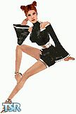 Nora wears a retro black velvet and metal mix, giving her that flare of originality. [Head is included. Light skin only.]