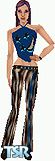 Ora wears a blue moon & stars halter with retro flares. Her hair, also showing her spunky flare, is streaked with red and blue highlights. (Head included. Light skin only.)