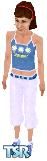 Blue top with 3 dasies and the word "Summer" with white capris. Mesh by Denise. Perfect summer outfit. Comes in all skin tones. Heads not included