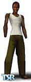 Perfect for the Sim who likes to hangout at the beach, or just around home......but still likes to look good, LoL. Comes with Moss Green cotton pants, and a Cream colored Tank Top. Dark Skin tone OnLy.