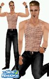 A heavy muscle shirt made from lightweight silver metal mesh, leather pants and two studded wristbands. For SIM studs ONLY! Light skin tone. Busboy Pierce head not included.