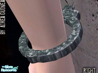 Galvanized metal right hand handcuff bracelet for young adult, adult, and elder males and females. Layerable with other accessories and available for use with all clothing states except nude & PJs. Basegame compatible.