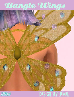 Gold wings with purple and blue bangles. Matches Bangle outfit. NEEDS MESH BY DR PIXEL. For Evi.