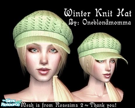 I just love this mesh! You need to get it from Rosesims 2 in the Accesories on page 11. I love this beautiful color and you can wear it with other accessories too! I hope you like my knit hat! Please feel free to leave any comments! I\'d love to hear from you!