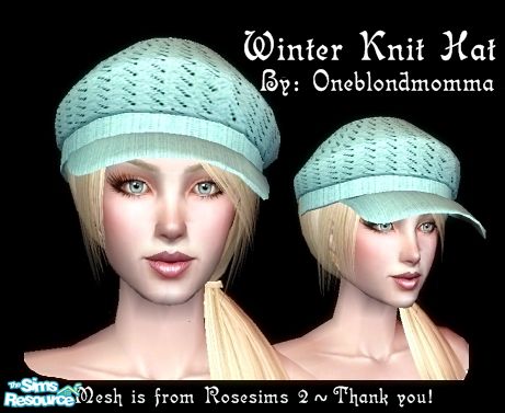 I just love this mesh! You need to get it from Rosesims 2 in the Accesories on page 11. I love this beautiful color and you can wear it with other accessories too! I hope you like my knit hat! Please feel free to leave any comments! I\'d love to hear from you!