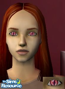 Give your Sim an amazing look with this red cat eye. The sclera (normally the white part of the eye) has been darkened slightly to make the eyes seem brighter. For both sexes, all ages.
