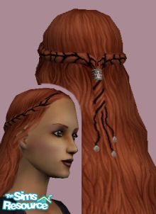 Your sim will love this medieval braid. Rope was carefully woven into the slightly enriched red hair and metal studs were added at the end of each rope for a decorative effect. Enjoy!