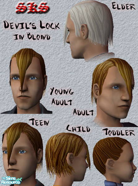 Blond devil\'s lock hair. Punks, rocks, & freaks everywhere will jam on this hair style. Looks awesome with my Misfits face paint and beady red eyes. All male ages included, Correctly binned in catalog. By: SKS