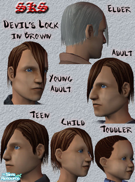 Brown devil\'s lock hair. Punks, rocks, & freaks everywhere will jam on this hair style. Looks awesome with my Misfits face paint and beady red eyes. All male ages included, Correctly binned in catalog. By: SKS