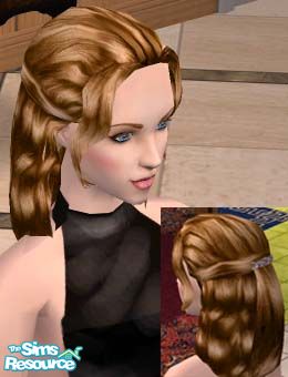 Diamond Clasp at back. Pale gold version of pulled back, soft waves.