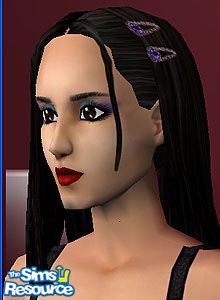 Tucked behind one ear with purple rhinestone clips on the side. Darker than normal black hair. Adult and teen only. www.simphora.com