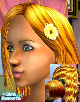*For females of all ages: With a cute little flower in her hair, your sim goes back in time in this classic hairstyle...(child does not have flower, only color)*BY: RubyStar Designs