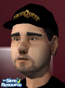 This is Howard, he just turned 17 this summer. He's an everquest fanatic. He played Everquest 16 hours a day last summer, this summer he has cut down to 8 hours a day cause he has a job at simburger. You will never see him without this official shirt and hat with the everquest logos on them. Pick one up for your online game fanatic sim today. This is the hat. Shirt is in clothes section. Props goes out to Maxis.