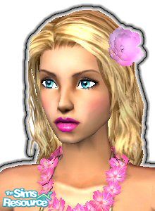 Blonde Long super-higlighted hair, Plenty of bounce and shine, with a pretty pink flower. Cute hair style for any occasion. Ideal for the beach or a cute hawaiian look!