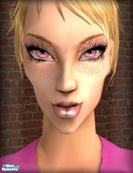 An interesting combination. A glowing blush plus a dazzling eye treatment! Eyes look best with a heavy, lashed eyeliner and thin, arched brows. Perfect for a party girl or that Sim that is a bit 'fey'. Looks much better in game than shown in photo. This makeup is for 'light skin' only.