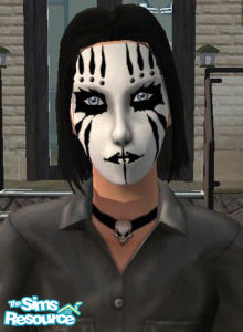 Face paint similar to the mask Slipknot's diminutive drummer wears on stage. Remove eyebrows before using ;-)