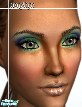 A multihued eyeshadow in shades of green and navy - perfect for confident, spritited Sims. This shadow looks great on light to medium skintones.