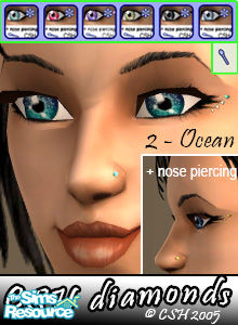 Sparkling diamonds for your eyes, available in 6 different colours with matching nose piercing ! For every sim to become a star ! :-) Please rate but do not clone, modify or recolor without permission and credits to me - Fairysunlight / CSH