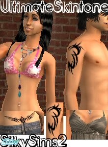 Includes arm tattoo for male, lower back tattoo for female, belly rings for female, and push-up bustline effect. I made this a while ago, but only now had a chance to upload it.