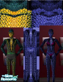 This skin will give your sims colorful snake scales. Male is green black and yellow, Female is purple and black. Babies and toddlers are pinkish red and children are greenish blue. Female skin resembles Mystique from the X-Men movie.