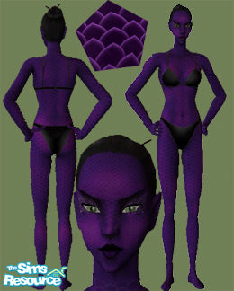 Purple scales cover the entire body (head included) from infancy on. Eyes also available.This is my first skin tone.