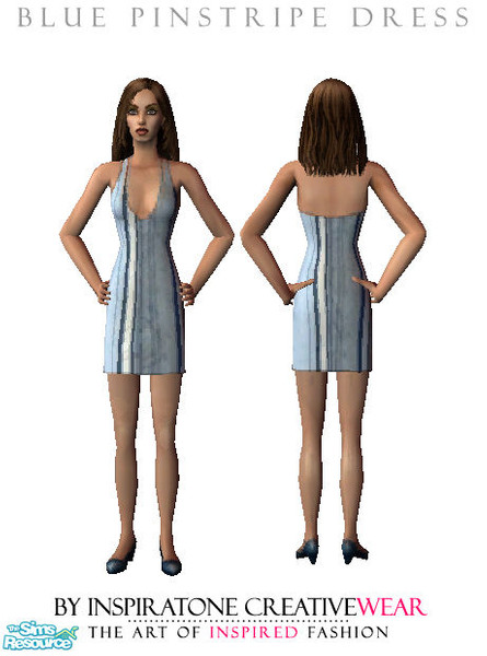 Go ahead and make a statement with this stylish blue pinstripe dress accented with matching elegant blue-grey pumps. Light and upbeat, this outfit is perfect for enjoying those hot summer parties - whether at home, or out on the town. :)