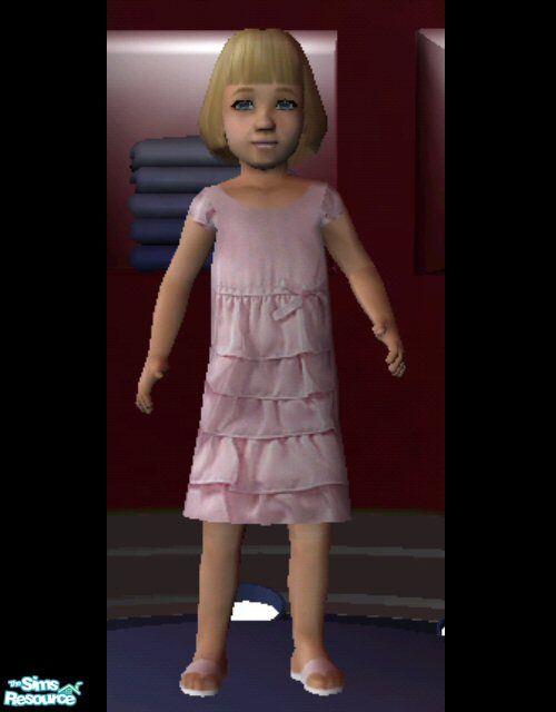 A pink satin ruffled dress for toddler girls, based on a dress from Baby Gap