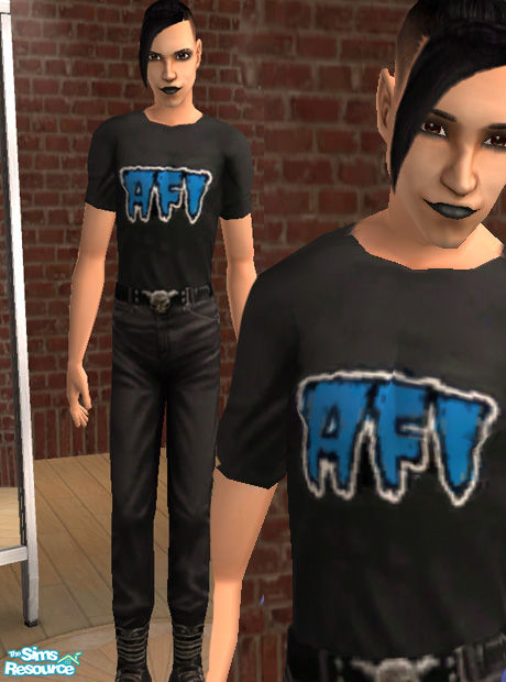 AFI t-shirt paired with the black jeans and boots. Find under adult male ensembles.