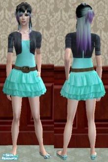 Recolour of a yellow dress and denim jacket found at Milano Sims 2. A very cute dress with a layered skirt and a cropped denim jacket for the adult female sim.